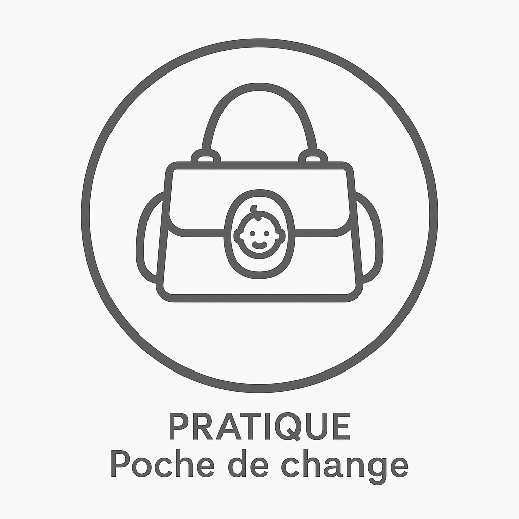 Ce badge garantit que le sac à langer est conçu avec de nombreuses poches de rangement, parfait pour organiser les biberons, couches, lingettes et accessoires de bébé. Chaque sortie devient plus simple et mieux organisée.